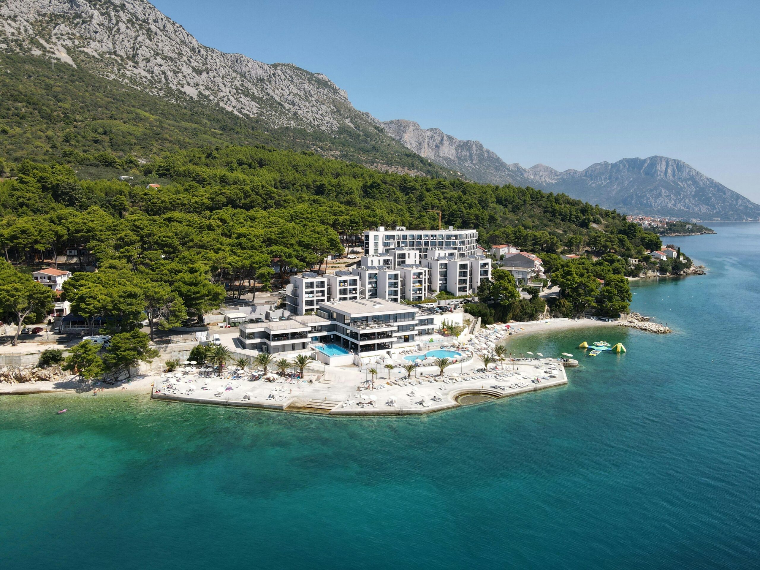 L’architettura del Grand Hotel e la grande piscina di acqua dolce, circondate da prati curati e florida macchia mediterranea, regalano un’atmosfera di privacy e tranquillità.